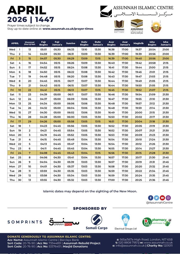 Assalamu 'alaikum wa rahmatullahi wa barakatuh, Ever been unsure of what time the prayer is at your local masjid? Worry no more. Alhamdulilah, it gives us great pleasure to bring to you a one stop salah timetable platform for the Tottenham community. We ask Allah to bless this work and bring our community together and we ask you to inform your friends and neighbours about us. JazakumAllahu Khayra Tottenham Jama'ah View all posts by tottenhamjamah